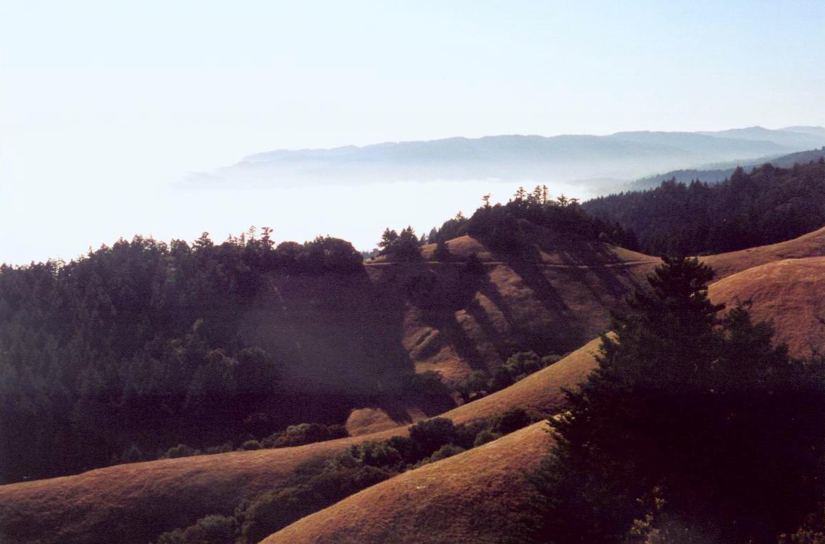 The "Car Ad" section of the Mt Tamalpais road. It had a little pullout with a rough track up onto a knoll. Lovely, lovely place, at a lovely time of the afternoon. Featuring Mike and Marie.