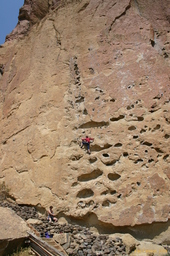 We then hit Cosmos, which is on a beautiful concave face, but is a little long for Marcus's tastes. (almost 25m) A storm blows in, big winds, a few drops of rain, then it's gone again, so we go up to the Pleasure Palace for some fun short stuff on a different layer of rock. And with that we were done. Marcus and Judith headed off to City of Rocks the next morning, and I had previously arranged to meet Liz so was sticking around for one more day.
