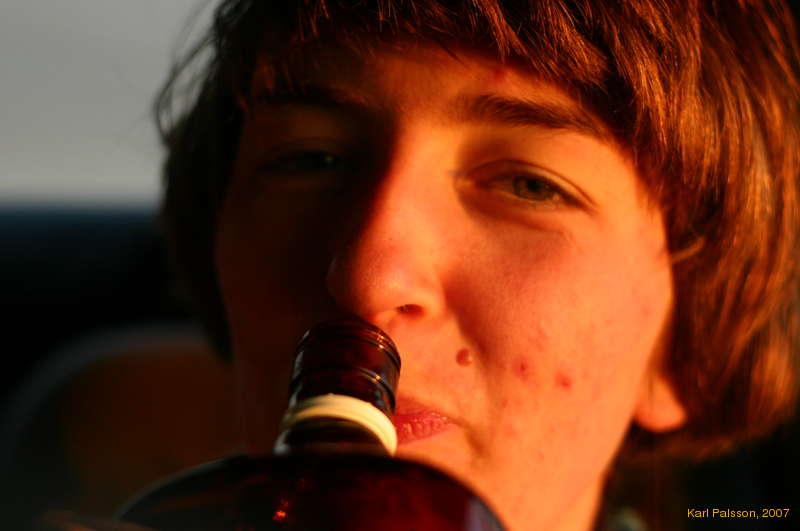 Nicky swigging Whiskey